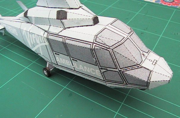 Modèle de test de la version simplifiée en cours de montage. Le vrai modèle est rouge, mais je n'avais plus d'encre rouge! Un modèle plus réaliste est sur le même site. Conception de E. Zarkov. Précision de montage excellente. Echelle : 1/50ème |