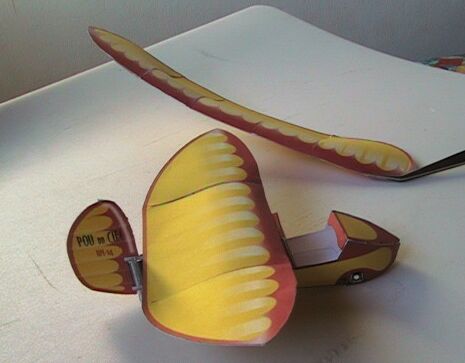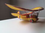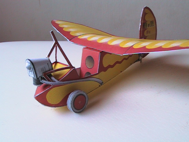 This is a recent model from FG series on 2 sheets. The 14 centimeters long model is at 1:33 scale. The fit is correct but I found some difficulties in forming the wing. If you follow the instruction, it is difficult to obtain a symetrical wing with correct camber. For the main wing, it was necessary for me to cut the upper face in three part to obtain a more or less correct result! In any case this FG model is very well received by Mignet's specialists.