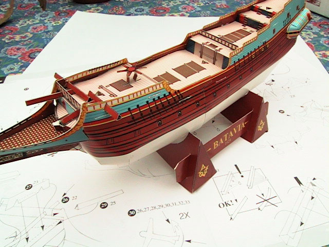 Ce modèle se présente sous forme d'un livret comportant plusieurs gravures du Batavia, 6 planches pré-découpées (22x31cm) et un livret explicatif de 12 pages comportant un rappel historique, des conseils de montage et une suite de croquis indiquant les différentes étapes de construction de la maquette.