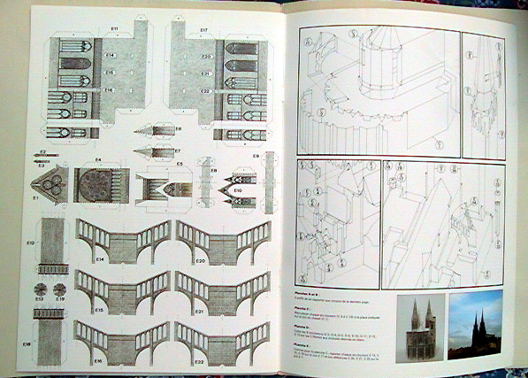 The gothic cathedral from Clermont-Ferrand (Auvergne). This is the first Pascaline's cardmodel published in 1984. 8p. book A4 with 72 parts on 5 sheets. Scale 1/400. Assembly instructions by drawings. |
