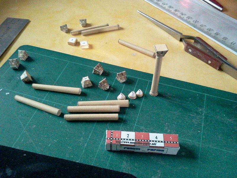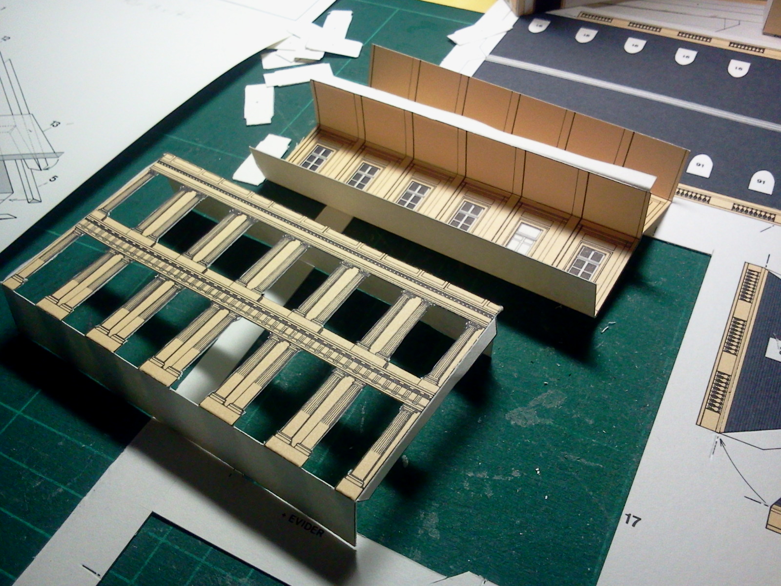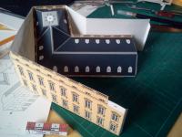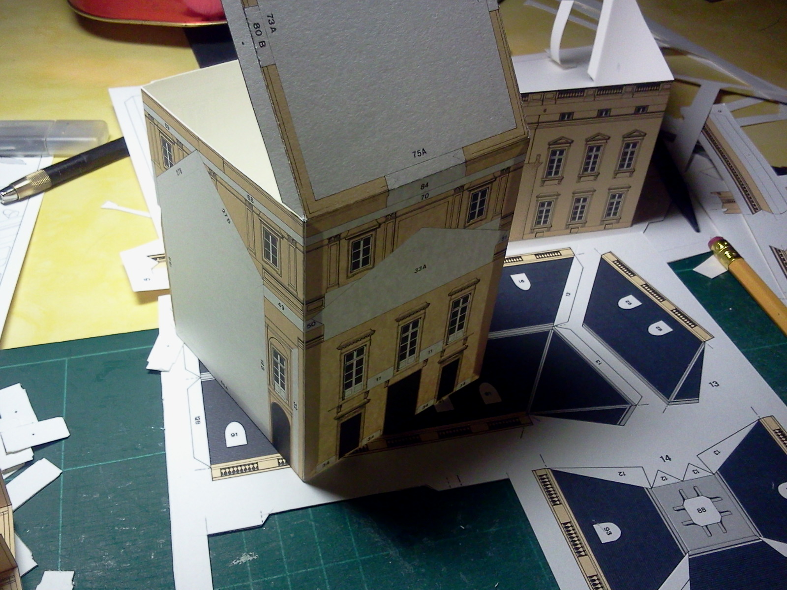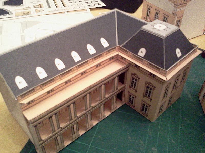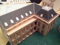 The Military Academy in Paris. Typical building from the french architect Gabriel (1752). Cardmodel published in 1988. 12p. book A4 with 168 parts on 8 pages. Scale 1/250. Length of he model: 40cm. Assembly instructions by drawings. Architectural model with only one uniform stone color but very nice looking. |