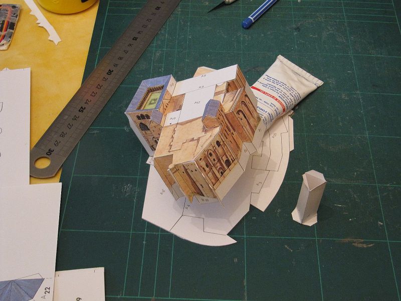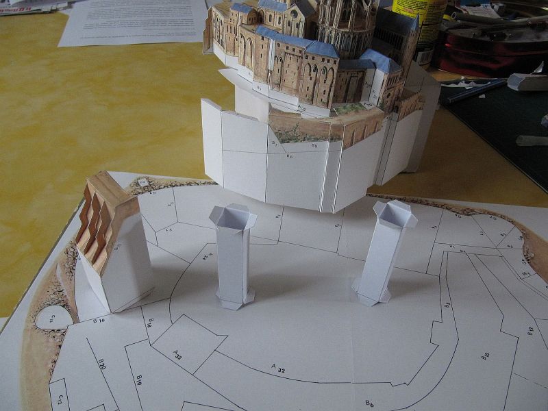 du modèle construit : 30x42x30cm. Mont Saint-Michel abbey. Well known attractive site in Normandy, France. Cardmodel published in 1987. 12p. book A4 with 168 parts on 8 pages. Scale 1/800. Model size: 30x42x30cm. Assembly instructions by drawings. Nice looking with a correct size. ISBN - 2905169-17-6 |