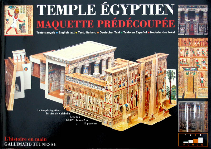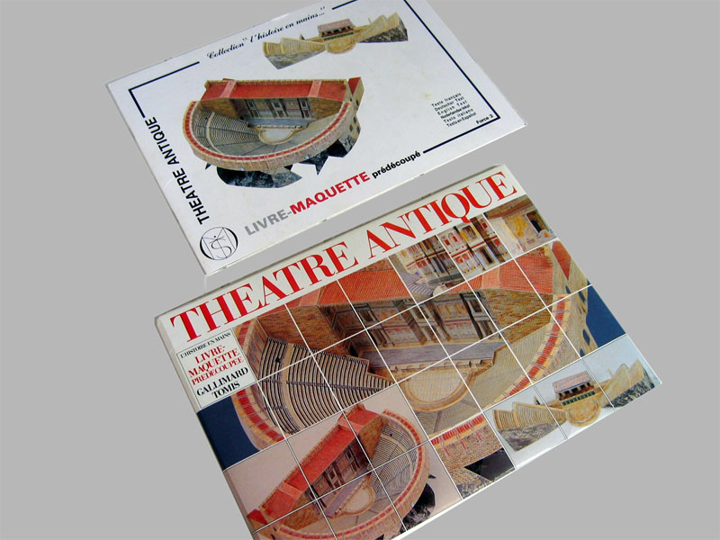 La reprise des modèles Tomis par Gallimard consistait en une simple pochette rajoutée sur le cahier original. Et par souci d'économie, les photos de la pochette reprenaient en fait les photos Tomis. Ci-dessus l'exemple du modèle du théâtre antique. Pour d'autres modèles, la pochette était en carton glacé noir et la reprise a permis une impression de meilleure qualité (en Belgique) que les derniers modèles Tomis.The takeover of Tomis models by Gallimard company consisted first in a simple wrapping. The covers photos were in fact Tomis photos. Above the example of the ancient theater model. For other models, the wrapper was made with a glossy black cardboard and the printing was far better quality (in Belgium) than the latest Tomis models.