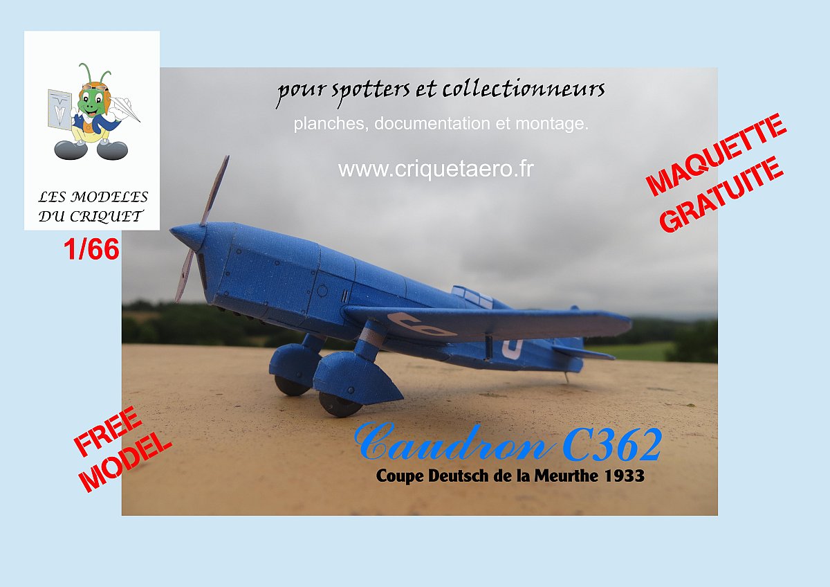 C'est un nouvelle version du modèle du Caudron 362 de la coupe Deutsche de la Meurthe 1933 que vous avait proposé Philippe à l'échelle 1/66ème en 2016.
