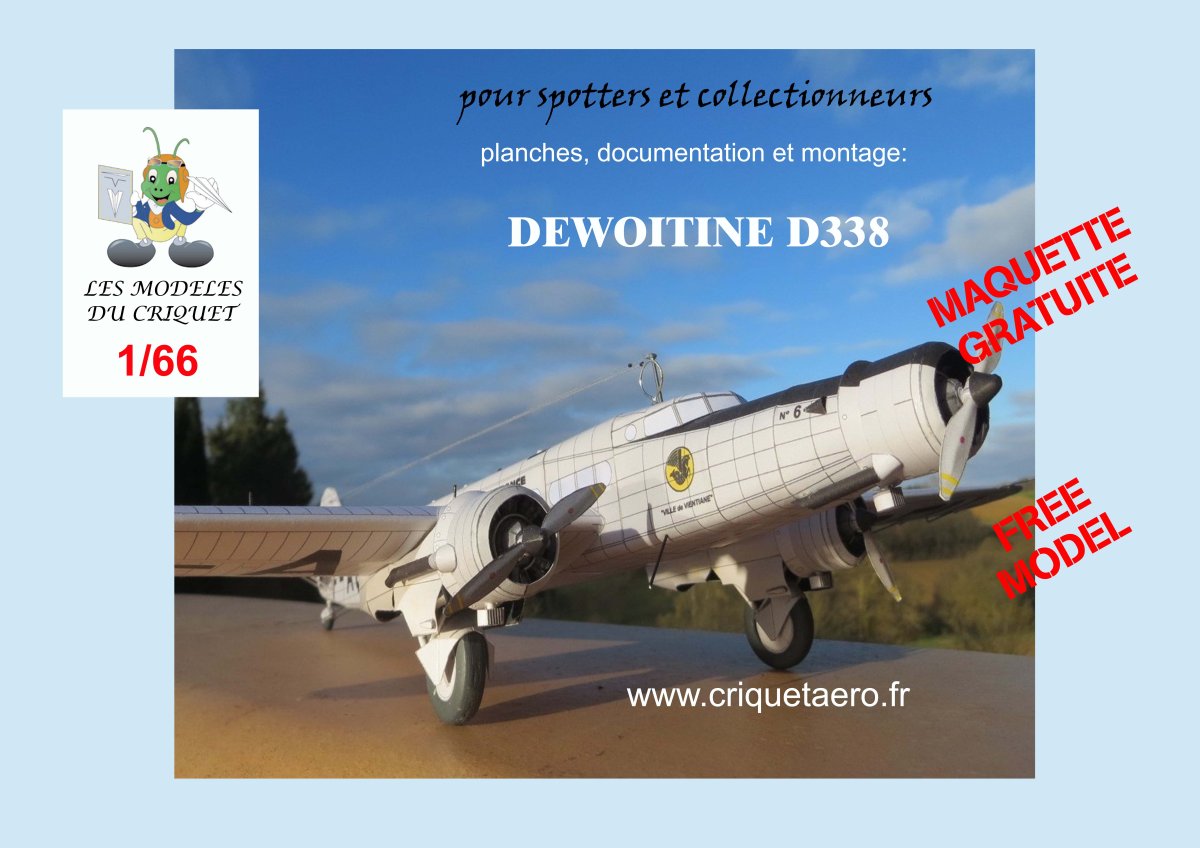 This Philippe's model is a reproduction of the Dewoitine 338 tri-motor in scale 1:66. See Philippe's blog Criquetaero for history and details. Warning: model only for expert cardmodeler!