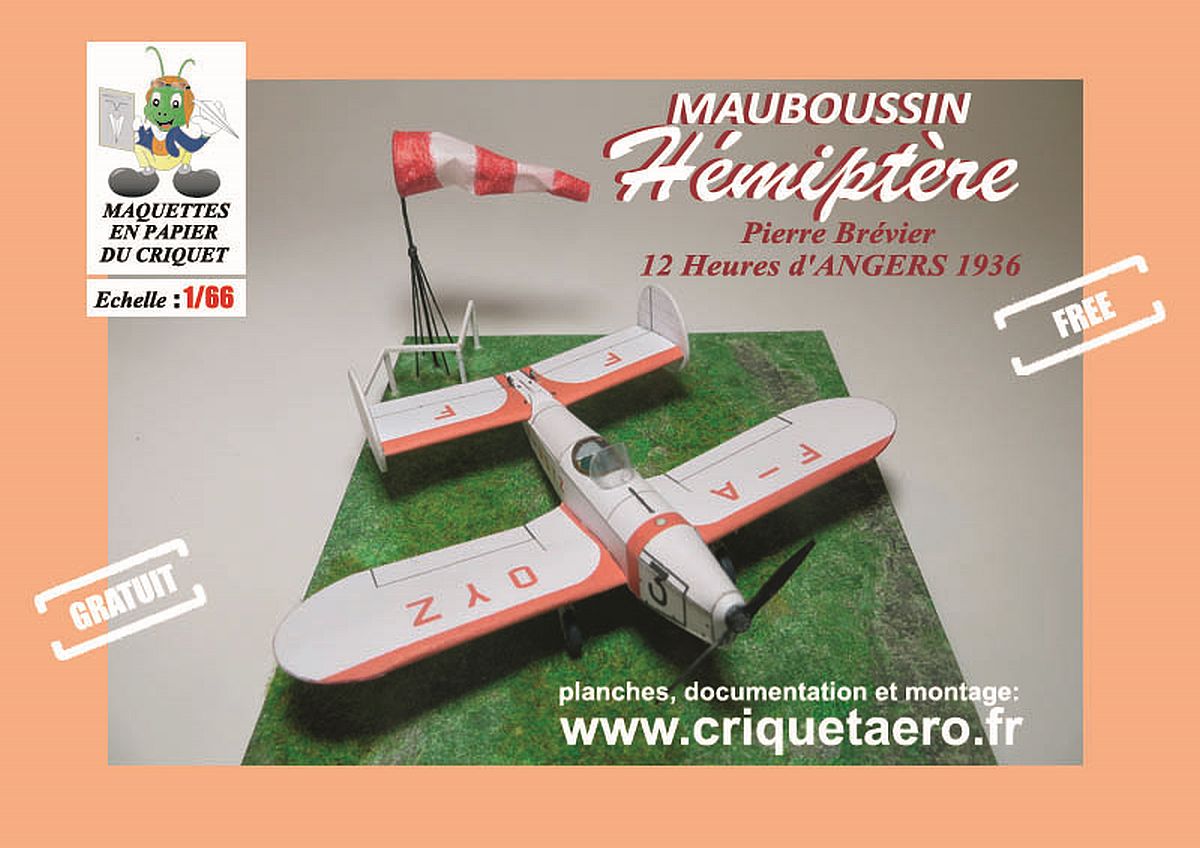 This Philippe's model is a reproduction of a very original aircraft in scale 1:66. See Philippe's blog Criquetaero for history and details. Warning: model only for expert cardmodeler!
