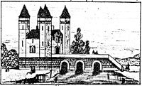 This model named "fortress" by the publisher is a thirteenth century fortified mill of Henri IV period with 4 towers and twelfth century romanesque bridge. The actuel bridge is larger and more complex than the model.
