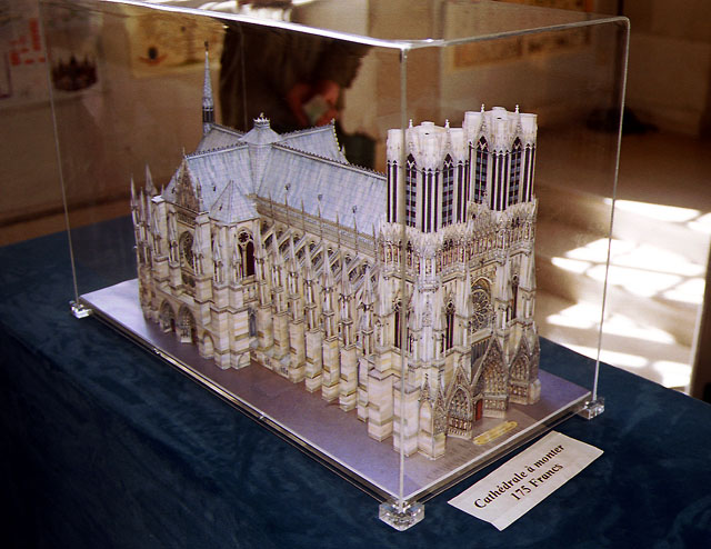 The L'Instant Durable cardmodel of this famous cathedral is presented build two times here: in the cathedral itself, in the shop at left side and in the museum's shop next to the cathedral. The model is very realistic and impressive.