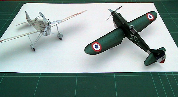 The Dewoitine 510 was a fighter with low wing and with a caracteristic "long legs" undercarriage. The D510 was used by French fighter units until mid-1940, but was never used in combat. More than hundred built. Engine: 860hp Hispano-Suiza 12cyl Wing span: 12.09m, Length: 7.94m, Speed: 402km/h, Range: 700km. A good example of co-operation on the Net: fine colorized models by Wily (Thank you Wily! Mailto:pizza@iw.net ):