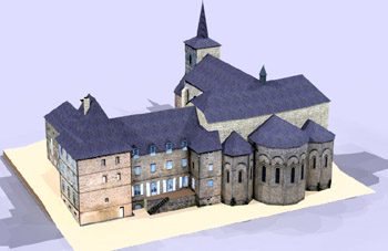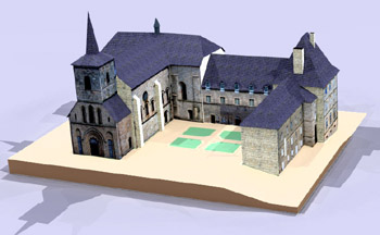 Sur cette version du modèle élaborée essentiellement à l'aide de photographies et du relevé du cadastre, de nombreux éléments ont été simplifiés ou simplement ignorés. De plus, en l'absence de plans en élévation, les hauteurs respectives des bâtiments ont été estimées. Il ne faut donc pas voir dans cette maquette une reproduction fidèle des bâtiments réels. Échelle approximative au 1/380 ème. Taille du modèle terminé : 20x17x11 cm.This model was primarily designed through photographs and cadastral survey. Many parts have been simplified or ignored. Without elevation blueprint, the respective heights of buildings were estimated. This model is not an accurate reproduction of the actual buildings.