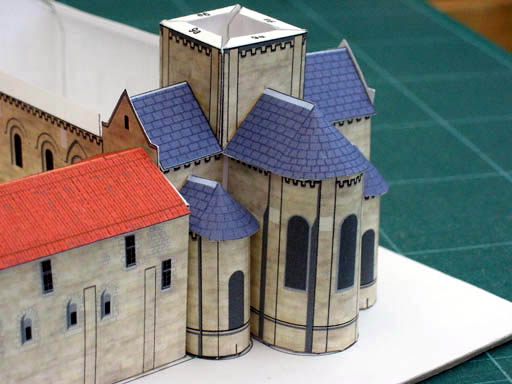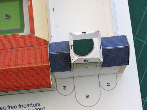 parts 11 and 14 (absidiole). Don't glue the nave roof 8